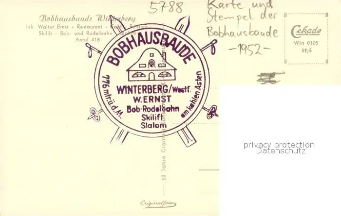 Winterberg_Hochsauerland Blick vom Bobhaus mit Skilift Winterberg_Hochsauerland postalisch nicht gelaufen 1952 Erhaltung siehe scans [WerneD78] WernPID7