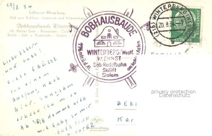 Winterberg_Hochsauerland Blick zum Bobhaus Astenturm Altastenberg Fliegeraufnahme Winterberg_Hochsauerland postalisch gelaufen 1954 Erhaltung siehe scans [FriedD77] Frierer