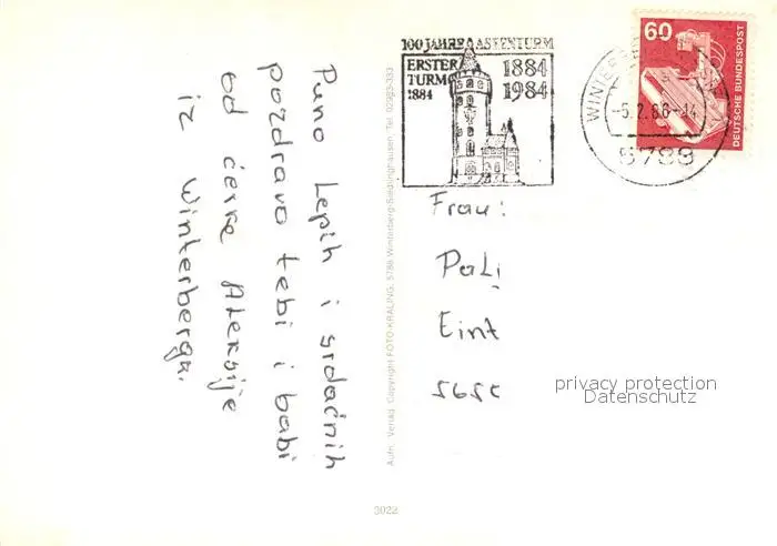 Winterberg_Hochsauerland Bob- Rodelbahn Winterberg_Hochsauerland postalisch gelaufen 1986 Erhaltung siehe scans [NatalD47] NataID47