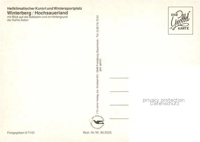 Winterberg_Hochsauerland Fliegeraufnahme mit Bobbahn und Kahler Asten Winterberg_Hochsauerland postalisch nicht gelaufen nach 1965 Erhaltung siehe scans [WerneD78] WernPID7