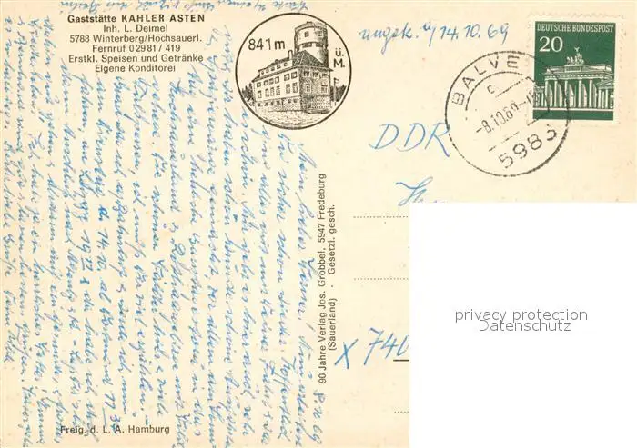 Winterberg_Hochsauerland Gaststaette Kahler Asten Aussenansicht m. Umgebung Winterberg_Hochsauerland postalisch gelaufen 1969 Erhaltung siehe scans [LiesaD40] LiesID40