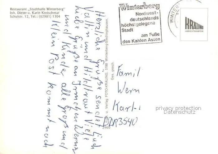 Winterberg_Hochsauerland Restaurant Stadthalle Winterberg_Hochsauerland postalisch gelaufen nach 1965 Erhaltung siehe scans [KathaD81] Kathoren