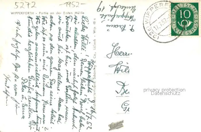 Wipperfuerth Partie an der Ersten Muehle Wipperfuerth postalisch gelaufen 1952 Erhaltung siehe scans [LiesaD40] LiesID40