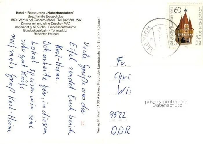 Wirfus Hotel Restaurant Hubertus Stuben Kaminzimmer Swimming Pool Wirfus postalisch gelaufen 1984 Erhaltung siehe scans [FriedD77] Frierer