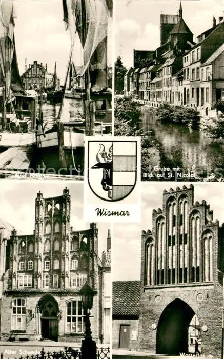 AK / Ansichtskarte Wismar_Mecklenburg Alter Hafen Grube St. Nikolaikirche Alter Schwede Wassertor Wappen Wismar_Mecklenburg