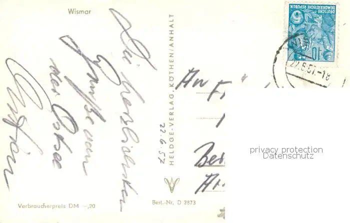 Wismar_Mecklenburg Alter Hafen Grube St. Nikolaikirche Alter Schwede Wassertor Wappen Wismar_Mecklenburg postalisch gelaufen 1957 Erhaltung siehe scans [FriedD77] Frierer