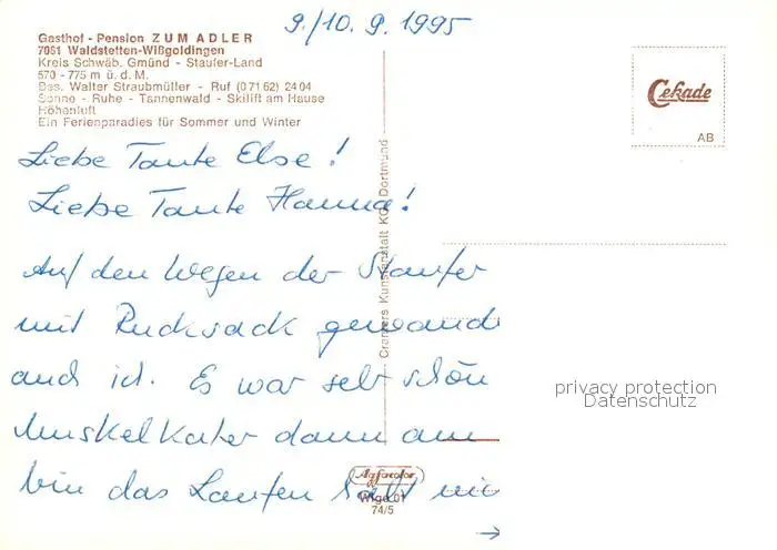 Wissgoldingen Gasthof Pension Zum Adler Wissgoldingen postalisch nicht gelaufen 1995 Erhaltung siehe scans [FriedD77] Frierer