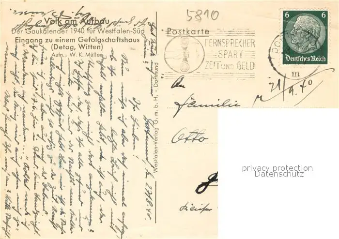 Witten_Ruhr Eingang zu einem Gefolgschaftshaus Witten Ruhr postalisch gelaufen 1940 Erhaltung siehe scans [LiesaD40] LiesID40