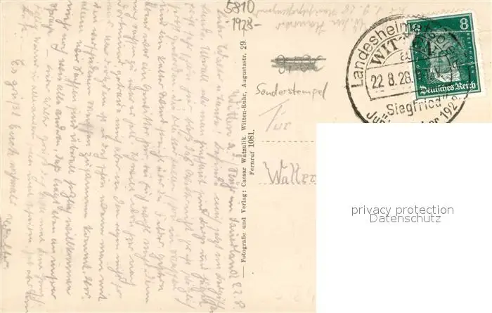 Witten_Ruhr Jugendherberge Aussenansicht Witten Ruhr postalisch gelaufen 1928 Erhaltung siehe scans [LiesaD40] LiesID40