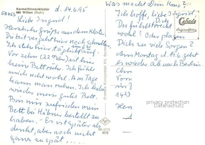 Witten_Ruhr Karmelitinnenkloster Witten Ruhr postalisch nicht gelaufen 1995 Erhaltung siehe scans [WerneD78] WernPID7
