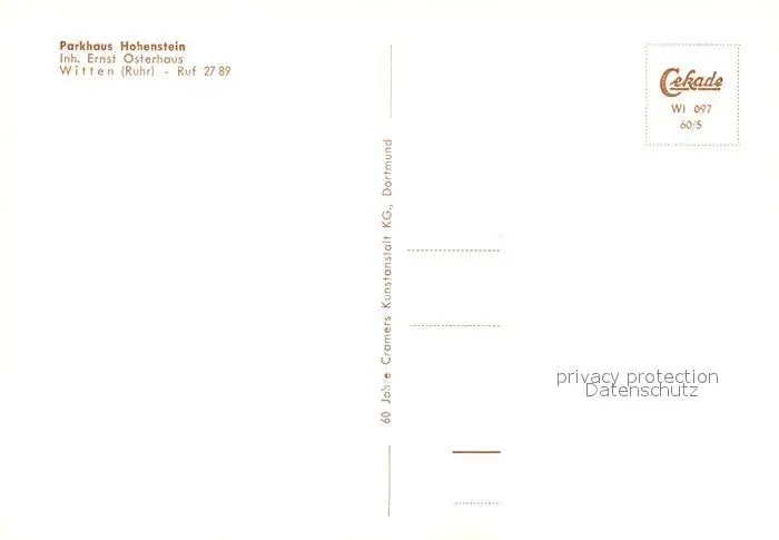 Witten_Ruhr Parkhaus Hohenstein Witten Ruhr postalisch nicht gelaufen nach 1965 Erhaltung siehe scans [WerneD78] WernPID7