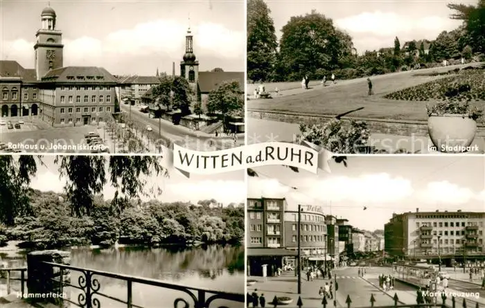 AK / Ansichtskarte Witten_Ruhr Stadtpark Rathaus Johanniskirche Hammerteich Marktkreuzung mit Strassenbahn Witten Ruhr