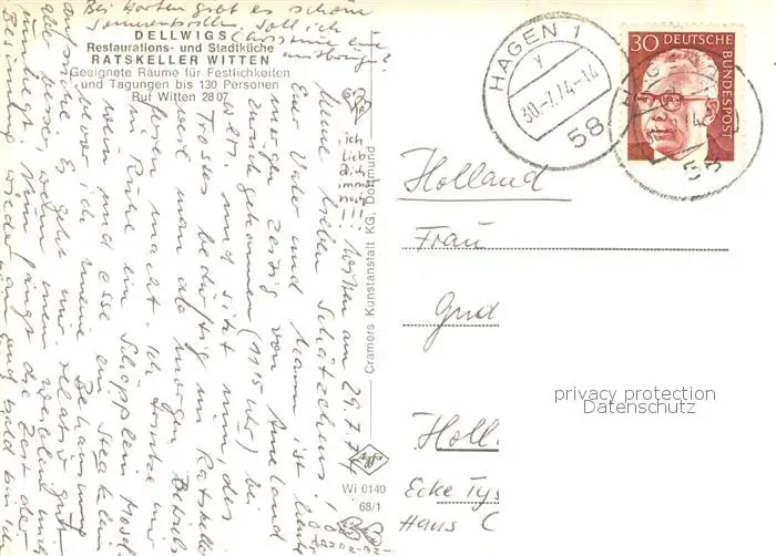 Witten__Ruhr Ratskeller Restaurant Wappen Kirchturm postalisch gelaufen 1974 Erhaltung siehe scans [FriedD77] Frierer