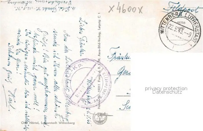 Wittenberg_Lutherstadt Fliegeraufnahme Lutherstadt Wittenberg_Lutherstadt postalisch gelaufen 1943 Erhaltung siehe scans [LiesaD40] LiesID40