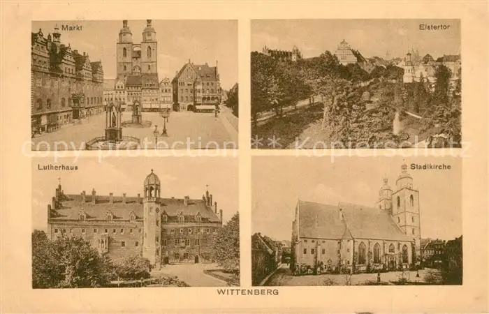 Wittenberg_Lutherstadt Markt Elstertor Lutherhaus Stadtkirche Wittenberg_Lutherstadt postalisch nicht gelaufen 1921-1965 Erhaltung siehe scans [KathaD81] Kathoren