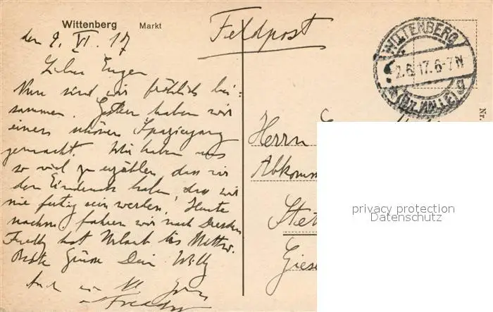 Wittenberg_Lutherstadt Marktplatz Wittenberg_Lutherstadt postalisch gelaufen 1917 Feldpost - Stempel Erhaltung siehe scans [LiesaD40] Feldpost - Stempel LiesID40