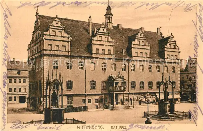 AK / Ansichtskarte Wittenberg_Lutherstadt Rathaus Lutherdenkmal Melanchthon Denkmal Wittenberg_Lutherstadt