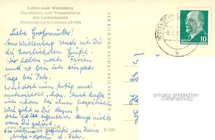 Wittenberg_Lutherstadt Treppenturm Lutherhaus Wittenberg_Lutherstadt postalisch gelaufen 1921-1965 Erhaltung siehe scans [KathaD81] Kathoren