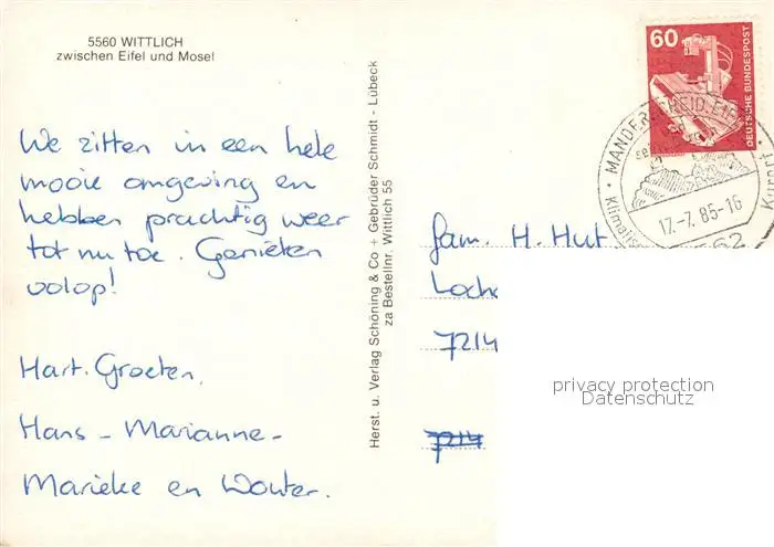Wittlich Rathaus Marktplatz Panorama Wittlich postalisch gelaufen 1985 Erhaltung siehe scans [WerneD78] WernPID7