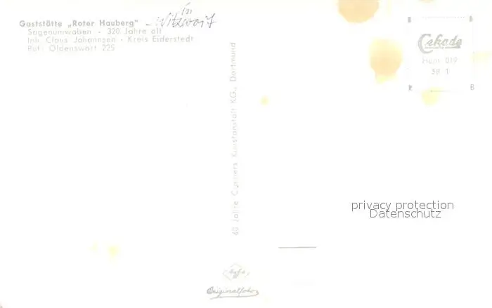 Witzwort Gaststaette Roter Hauberg Witzwort postalisch nicht gelaufen 1958 Erhaltung siehe scans [FriedD77] Frierer