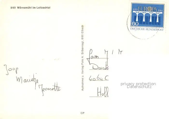 Woernsmuehl Ortsansicht mit Kirche Leitzachtal Woernsmuehl postalisch gelaufen 1984 Erhaltung siehe scans [FriedD77] Frierer