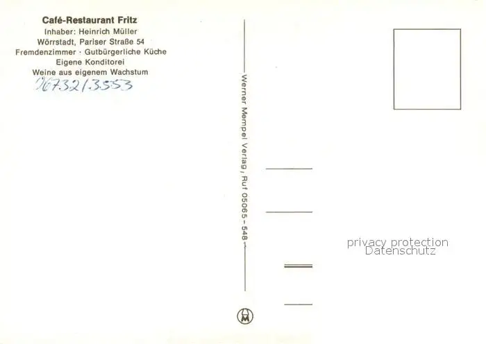 Woerrstadt Cafe Restaurant Fritz Bar Weinfaesser Gastraeume Zimmer Woerrstadt postalisch nicht gelaufen nach 1965 Erhaltung siehe scans [WerneD78] WernPID7