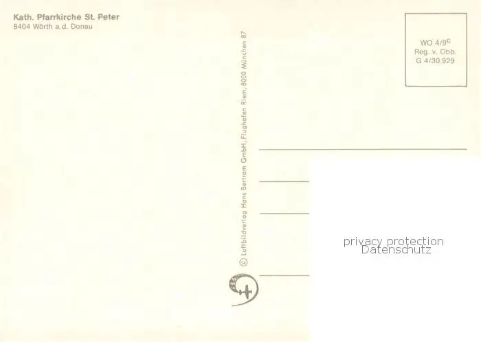 Woerth_Donau Katholische Pfarrkirche St. Peter Woerth Donau postalisch nicht gelaufen nach 1965 Fliegeraufnahme Erhaltung siehe scans [FriedD77] Fliegeraufnahme Frierer