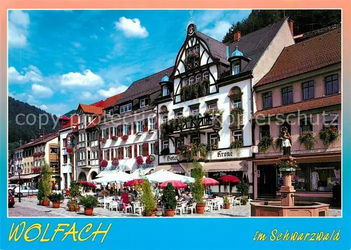 AK / Ansichtskarte Wolfach Hauptstrasse Strassencafes Brunnen Wolfach