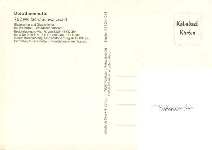 Wolfach Rathaus Glasmacher und Glasschleifer bei der Arbeit Wolfach postalisch nicht gelaufen nach 1965 Erhaltung siehe scans [WerneD78] WernPID7