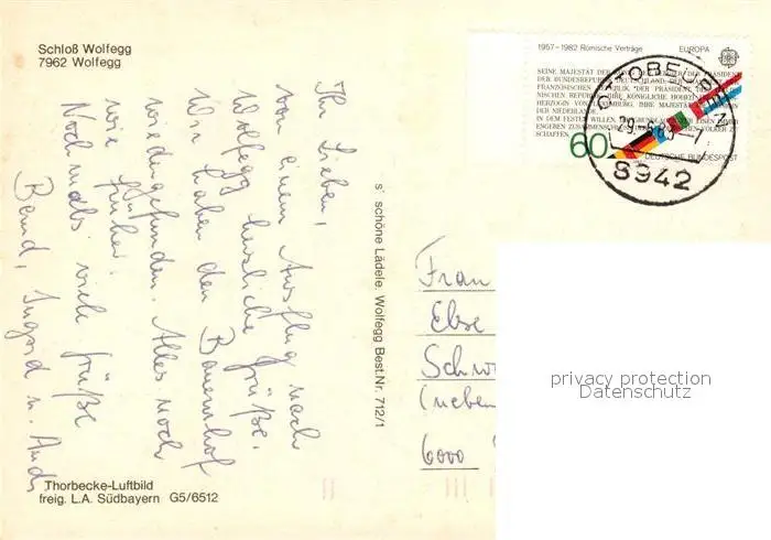 Wolfegg Fliegeraufnahme mit Schloss Wolfegg Wolfegg postalisch gelaufen 1983 Erhaltung siehe scans [WerneD78] WernPID7