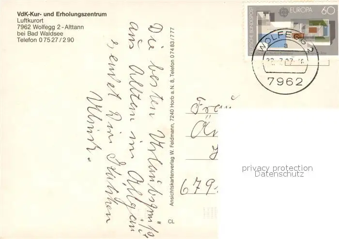 Wolfegg VdK Kur und Erholungszentrum Wolfegg postalisch gelaufen 1987 Erhaltung siehe scans [WerneD78] WernPID7