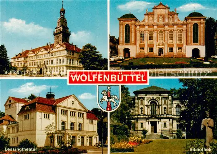 AK / Ansichtskarte Wolfenbuettel Schloss Trinitatiskirche Lessingtheater Bibliothek Statue Wolfenbuettel