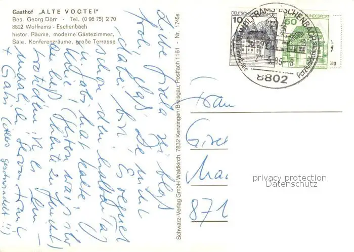 Wolframs-Eschenbach Gasthof Alte Vogtei Wolframs-Eschenbach postalisch gelaufen 1985 Erhaltung siehe scans [WerneD78] WernPID7