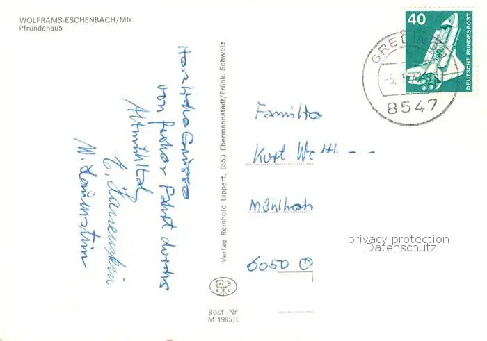 Wolframs-Eschenbach Pfruendehaus Fachwerkhaus Historisches Gebaeude Altstadt Wolframs-Eschenbach postalisch gelaufen 1977 Erhaltung siehe scans [FriedD77] Frierer