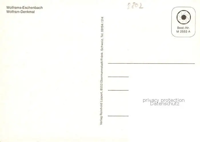 Wolframs-Eschenbach Wolfram Denkmal Wolframs-Eschenbach postalisch nicht gelaufen nach 1965 Erhaltung siehe scans [WerneD78] WernPID7