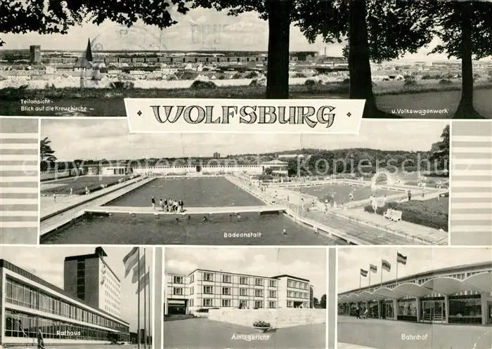 AK / Ansichtskarte Wolfsburg Rathaus Amtsgericht Bahnhof Badeanstalt Volkswagenwerk Kirche Wolfsburg
