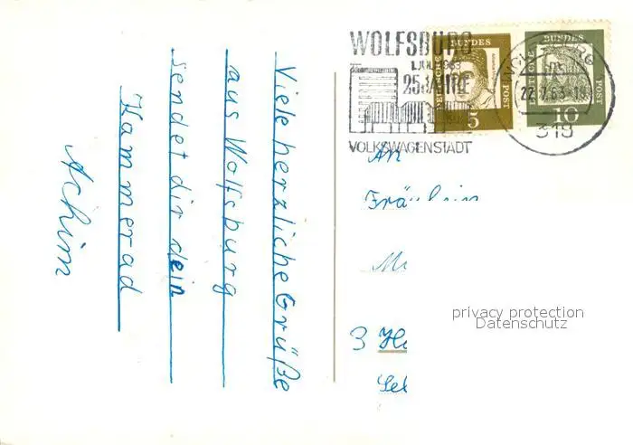 Wolfsburg Rathaus Amtsgericht Bahnhof Badeanstalt Volkswagenwerk Kirche Wolfsburg postalisch gelaufen 1963 Erhaltung siehe scans [KathaD81] Kathoren