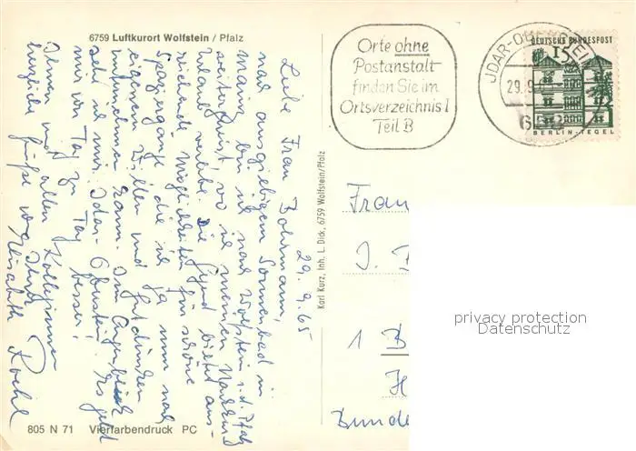 Wolfstein_Pfalz Fliegeraufnahme Kirche Ortspartien Wolfstein_Pfalz postalisch gelaufen 1965 Erhaltung siehe scans [WerneD78] WernPID7