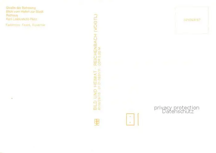 Wolgast_Mecklenburg-Vorpommern Strasse der Befreiung Hafen Rathaus Karl Liebknecht Platz Wappen Wolgast postalisch nicht gelaufen 1987 Erhaltung siehe scans [FriedD77] Frierer