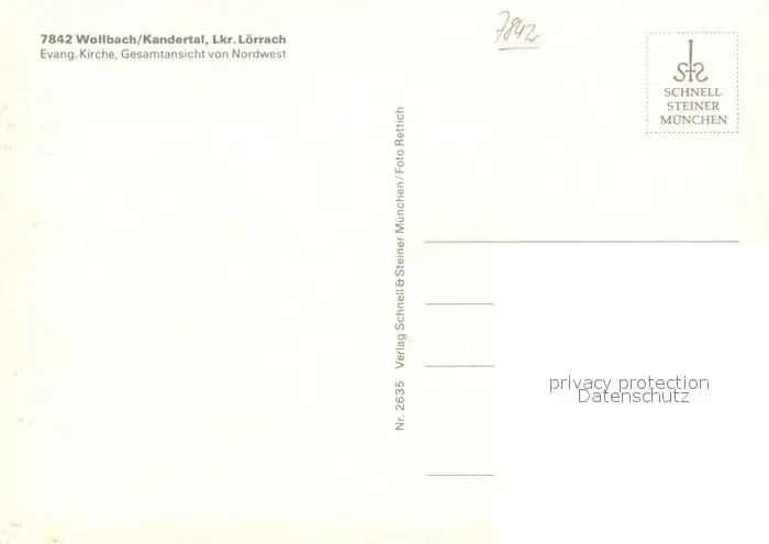 Wollbach_Kandern Ev Kirche Wollbach Kandern postalisch nicht gelaufen nach 1965 Erhaltung siehe scans [WerneD78] WernPID7
