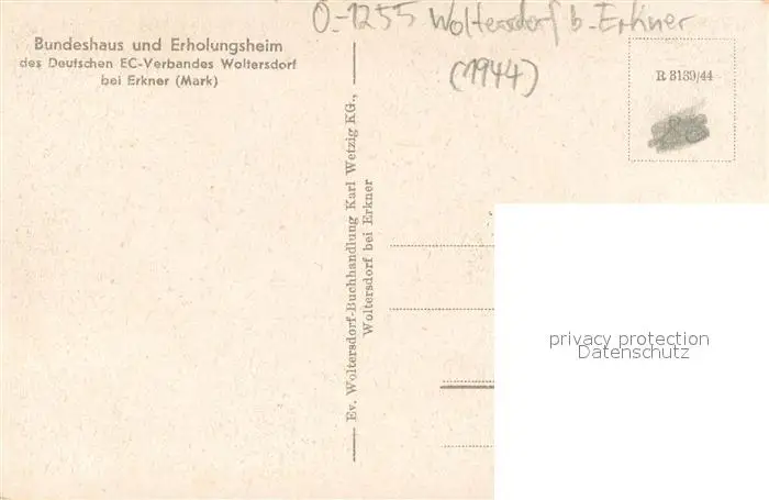 Woltersdorf_Erkner Bundeshaus und Erholungsheim des Dt EC Verbandes Woltersdorf Erkner postalisch nicht gelaufen 1944 Erhaltung siehe scans [WerneD78] WernPID7