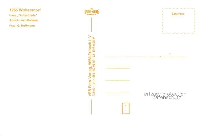 Woltersdorf_Erkner Haus Gottesfriede Ansicht vom Kalksee Woltersdorf Erkner postalisch nicht gelaufen 1987 Erhaltung siehe scans [FriedD77] Frierer