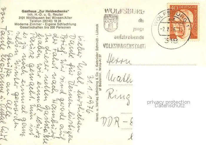 Wolthausen Gasthaus Zur Heideschenke Garten Lueneburger Heide Wolthausen postalisch gelaufen 1976 Erhaltung siehe scans [FriedD77] Frierer
