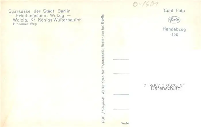 Wolzig Sparkasse der Stadt Berlin Erholungsheim Wolzig postalisch nicht gelaufen nach 1965 Erhaltung siehe scans [WerneD78] WernPID7