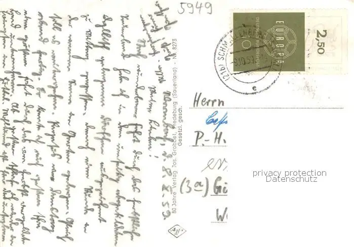 Wormbach Ortsansicht mit Kirche Wormbach postalisch gelaufen 1959 Erhaltung siehe scans [FriedD77] Frierer