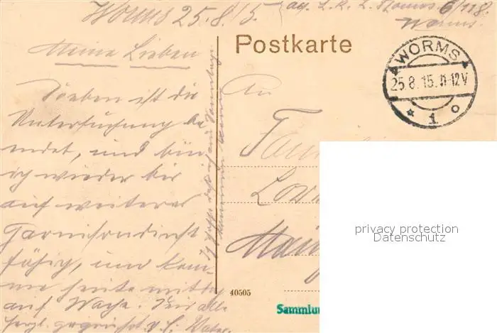 Worms Rhein Dom Abenheim postalisch gelaufen 1915 Feldpost Erhaltung siehe scans [FriedD77] Feldpost Frierer
