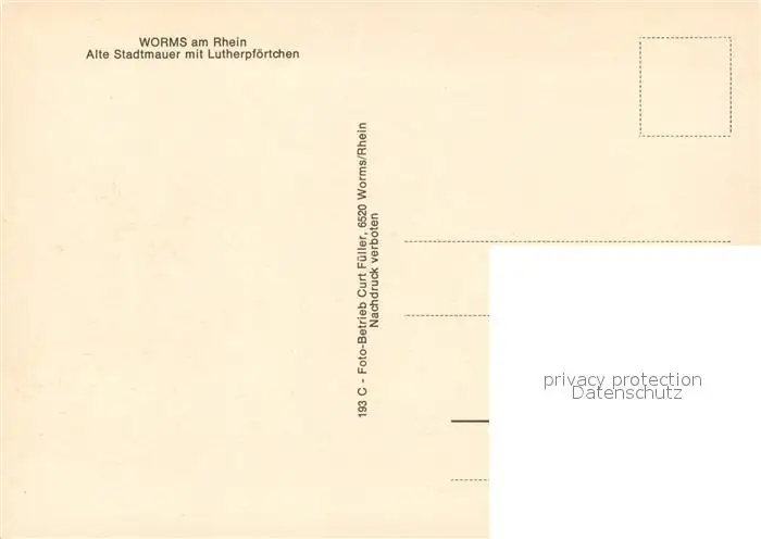 Worms_Rhein Alte Stadtmauer mit Lutherpfoertchen Worms Rhein postalisch nicht gelaufen 1921-1965 Erhaltung siehe scans [WerneD78] WernPID7