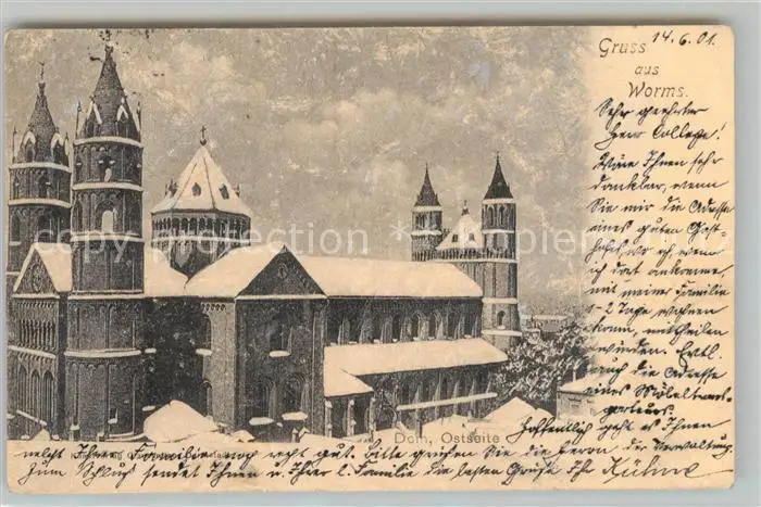 Worms_Rhein Dom Ostseite im Winter Worms Rhein postalisch gelaufen 1901 Erhaltung siehe scans [FriedD77] Frierer