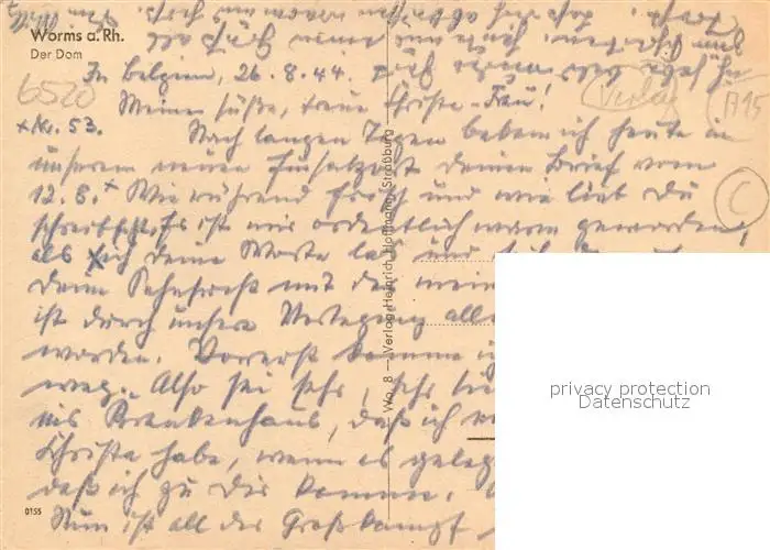 Worms_Rhein Dom Worms Rhein postalisch nicht gelaufen 1944 Erhaltung siehe scans [FriedD77] Frierer