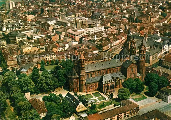 Worms_Rhein Innenstadt Kirche Fliegeraufnahme Worms Rhein postalisch gelaufen 2005 Erhaltung siehe scans [FriedD77] Frierer